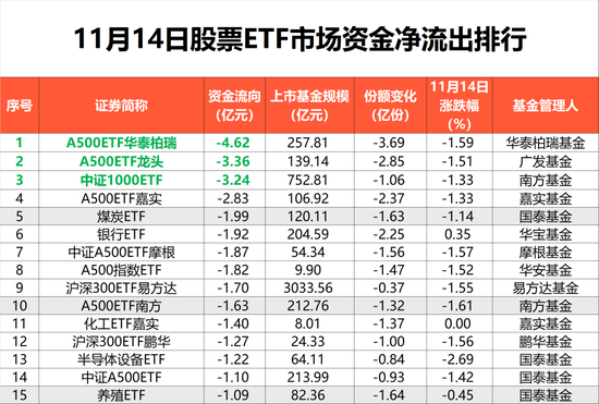 此外,煤炭ETF、银行ETF、化工ETF嘉实等行业或主题ETF产品,位居资金净流出金额前列。